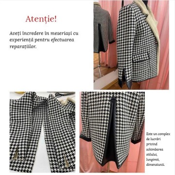 Lucrăm cu atenție la detalii, folosim echipamente moderne și respectăm standardele de calitate, pentru ca fiecare intervenție să fie cât mai discretă și durabilă. Prețurile sunt accesibile, iar termenul de execuție este întotdeauna respectat — pentru că știm cât de important este să îți recapeți hainele în timp util.